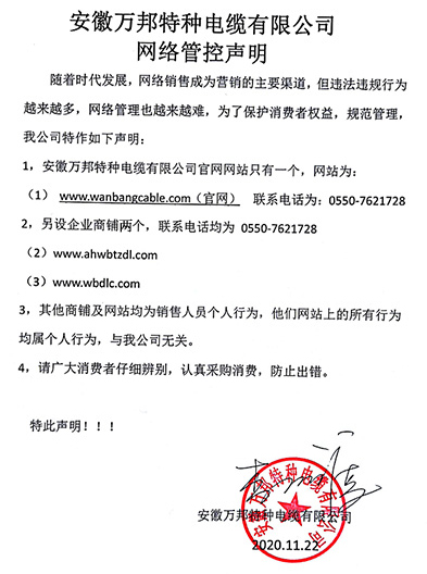 鄭重聲明:安徽萬邦特種電纜有限公司官方網站為:www_wanbangcable_com.gxsdzs.cn,除此之外無任何子網站或合作網站,其余均為假冒偽劣。電話:0550-7621728 13485756353 地 址:安徽省天長市滁州高新技術產業開發區經四路29號